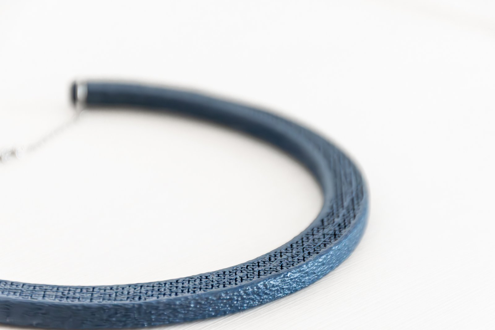 d. Postproducción: Modelado digitalmente en 3D, se imprime en filamento PLA. Tras la impresión, cada pieza pasa por un proceso artesanal de lijado y barnizado con Spray MTN PRO Gloss, logrando un acabado brillante que realza la textura y profundidad del color.